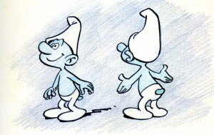 … Mais pourquoi donc ce nom de « Schtroumpf »??? … C’est lors d’un repas, entre dessinateurs, qu’un autre auteur bruxellois, André Franquin (1924-1997), créateur de « Gaston Lagaffe » et du « Marsupilami » (pour lequel « Peyo » écrivit, par ailleurs, quelques scénarios de courtes histoires), souhaitant recevoir le sel et le poivre, dit, en les désignant du doigt: « passe moi les schtroumpfs »…