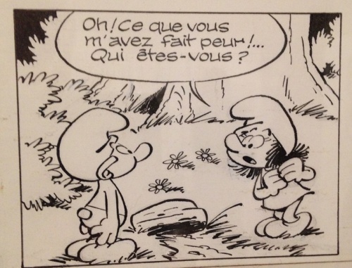 Lisons donc ce qu’en dit notre collègue Hugues Dayez, auteur de la biographie « Peyo l’enchanteur » et commissaire de la présente exposition, aux côtés de José Grandmont, collaborateur de longue date du « StudioPeyo »: « Nous avons sélectionné différentes sources et matériaux graphiques pour que le visiteur ne s’ennuie pas. Mais l’oeuvre est tellement riche… Toutes ces planches réunies, c’est vraiment la réalisation d’un fantasme ! »