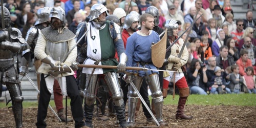 Après avoir réalisé de nombreux tournois de chevalerie dans le monde entier, les "Ecuyers de l’Histoire" seront sur la Citadelle de Namur, pour nous présenter, au "Bourg", cinq spectacles, esssentiellement équestres, d'une durée, de 15' à 1h20, tous étant d'un étonnant réalisme, avec des armures et lances non émoussées, A ne pas manquer, à 15h15, leur spectacle "La Lice à Pied". Durant 80 minutes, il nous présente des chevaliers se battant à pied, armés comme au XVe siècle (épée, dague, lance et hache noble), sans oublier, leur "Joute équestre", à 18h15, présentant, en une heure, un véritable combat de joutes à cheval.