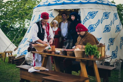 En ce dernier lieu, un village des artisans nous proposera différentes créations de type médiéval : bijoux, couteaux, cuirs, encens, grimoire, jeux en bois, livres, parfums, poteries, vêtements ... Un petit creux ? ... Un espace restauration nous ravira avec son choix varié de crèpes, ou de plats de falafels, jambonneaux, lentilles, riz, ... que nous pourrons accompagner, notamment, d'hydromel ou d'hypocras, un vin sucré, avec infusion de canelle et de girofle, tel qu'il était préparé au Moyen-Age.