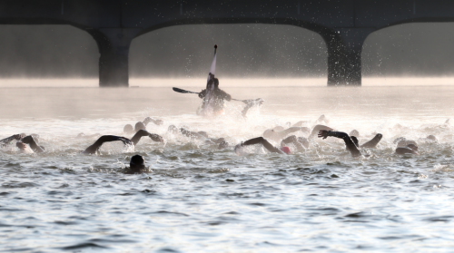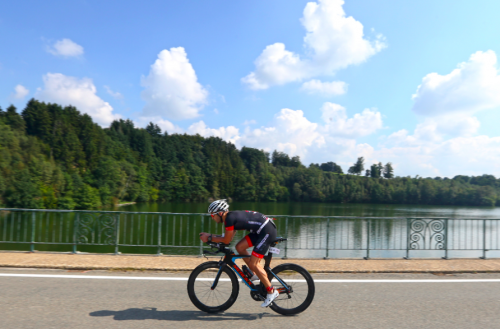 Deux formats sont proposés, le HALF ( en solo en en équipe relais ) : 1,9 km nage – 90 km vélo – 21 km pied et le STANDARD ( soit le format olympique ) : 0,9 km nage – 40 km vélo – 10 km pied. Ce que la distance ne vous dit pas, c’est que le dénivelé de la partie vélo approche les 550 m de D+ !