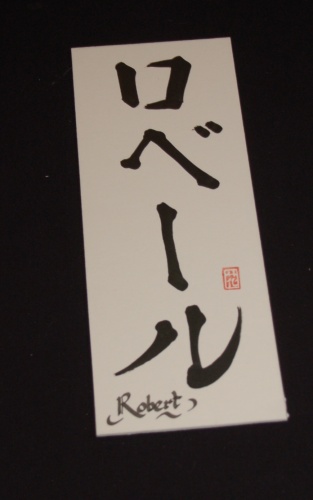J'ai aussi découvert une calligraphe qui a aussi gagné la première place du concours mondial de cosplay au Japon en 2007. J'en ai profité pour me faire écrire mon prénom en Katakana (syllabaire japonais).