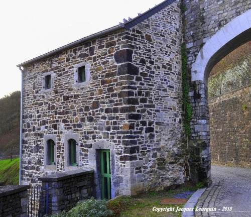 Prenons de l’altitude, à l’arrière du « Casino », en gagnant la Citadelle, jusqu’au N° 32 de la Route Merveilleuse, afin de découvrir leurs « merveilleuses » photographies accrochées aux murs historiques des deux étages, de la « Tour Joyeuse », une tour de guet, récemment restaurée, dont l’intérieur est actuellement mis en valeur par une scénographie particulièrement bien pensée, et réalisée, par nos deux artistes-photographes namurois, qui n’ont pas hésité à exploiter la présence de … meurtrières, … la Citadelle étant une ancienne place forte que les militaires ne quittèrent qu’en 1977, alors que le Marquis de Vauban (1633-1707) en avait achevé son édification en 1692, quelques bâtiments ayant été ajoutés, sous l’occupation néerlandaise, entre 1815 et 1830 ! …