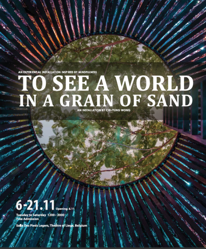 Afin de créer cette installation, Chi-yung a commencé ses recherches en 2016 en tant qu’artiste résident dans le programme Artists_in_labs de l’Institut d’études culturelles sur les arts (ICS) de l’Université des arts de Zurich. Accompagné ensuite par le programme IMPACT Lab mis en place par le Théâtre de Liège, le travail de Chi-yung Wong est le résultat de deux années de recherches transdisciplinaires articulant le secteur artistique, académique et industriel. Coprésentée avec le Hong-Kong Arts Center, To See a World in a Grain of Sand sera visible au Théâtre de Liège du 6 au 21 novembre 2018.