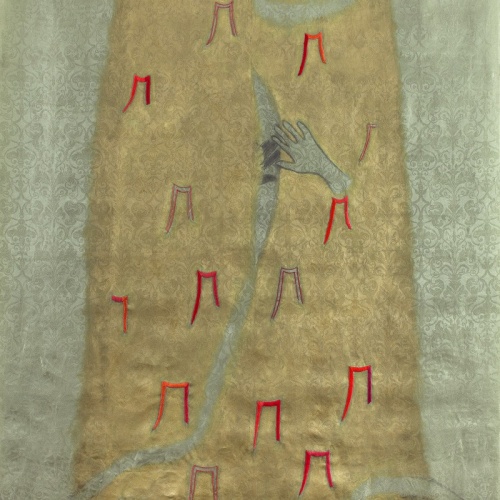 • JULIETTE ROUSSEFF est née à Liège en 1943. Son père était bulgare et sa mère liégeoise. Elle a toujours vécu à Liège où elle a, parallèlement à ses études de philologie romane, suivi les cours de dessin de l'Académie des Beaux-Arts. Elle a exposé dans de nombreux centres d'art, galeries ou musées. Et organise des expositions et stages collectifs avec d'autres artistes, notamment sur l'expression textile mais également sur des thèmes précis comme la métamorphose, englobant toutes les pratiques artistiques : peinture, vidéo, photo, installation... Dans son appréhension du monde, Juliette Rousseff préfère ce qui est caché plutôt que ce qui est apparent. L'ambivalence du réel, avec ses mythes et ses symboles, elle veut la traduire dans son oeuvre plastique. La plupart des oeuvres présentées aujourd'hui, une cinquantaine, n'ont jamais été exposées. Elles sont presque toutes postérieures à 2011, parmi celles-ci beaucoup de peintures en grands formats, proposées par thématiques - les âmes, l'absence et la présence, les sonorités intérieures et les vibrations, la traversée du miroir et son au-delà, les métamorphoses... - mais aussi des broderies mêlées à la peinture, une vidéo et des petites sculptures plus anciennes. Franchir les portes de cette belle exposition, c'est venir savourer le beau, se laisser gagner par l'émotion, effleurer l'indicible, s'emplir de sens, prendre plaisir à trouver sans chercher ou à chercher sans trouver... Oser emprunter un autre chemin, se laisser guider, redécouvrir ses sens...