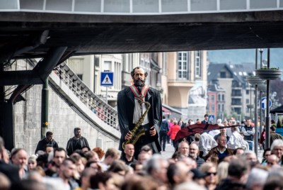 Mais volià, ce dimanche 29 avril, tous les Dinantais ne peuvent qu'espérer, désormais des jours meilleurs, le bateau "Le Sax", de "Dinant Evasion", d'une capacité de 250 personnes, participant à la fête, en ouvrant son bar au public, alors que se prépare, à sa hauteur, sur la "Croisette", le dernier événement officiel de la journée, à savoir l'inauguration du premier saxophone géant d'une nouvelle série, le dernier de la première série ayant été offert, il y a peu, à la Ville de La Nouvelle Orléans.