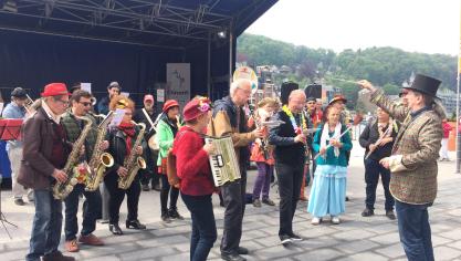 Dans le même temps, parcourant la "Croisette" sur toute sa longueur, tant le Géant d'Adolphe Sax (1914-1994), joyeusement porté par des membres de l'asbl "Mougneux d'Coûtches", que de nombreux petits orchestres mettaient le saxophone à l'honneur, pour le plus grand plaisir des Dinantais, des touristes de passage et des ... tenanciers de cafés-brasseries, de restaurants, et autres commerçants, qui tous eurent tant à souffrir de la longueur des travaux, entammés en ... 2015, pour le gros oeuvre, sachant que dès 2013, les services concernés durent préparer le terrain, au niveau des intallations d'eau, d'électricté et de gaz... Coût pour la Région : 4,3 Milions d'€, la Ville intervenant également.