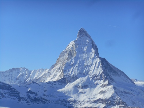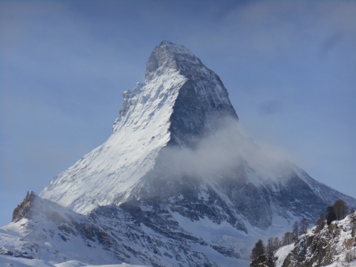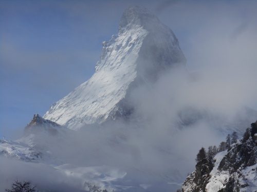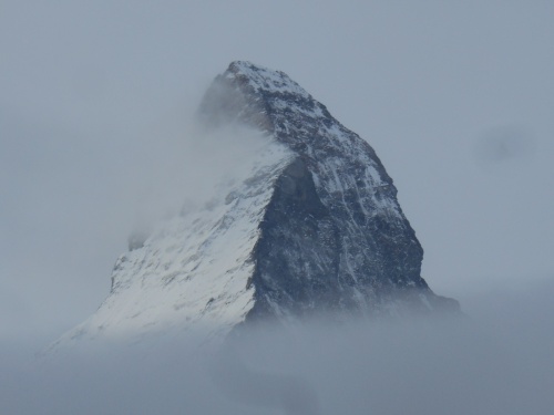 Zermatt abrite le majestueux Cervin (Matterhorn) qui culmine à 4 478m d'altitude. De la terrasse de l'hôtel, l'on peut admirer le passage des nuages devant le triangle du Cervin puis l'apparition d'un magnifique ciel bleu. Quel beau paysage!