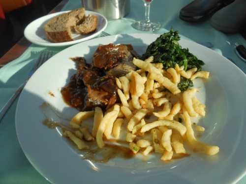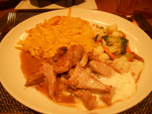 Le succulent émincé de veau à la Zürichoise avec röstis -le plat traditionnel suisse, est à 30€. Un régal! (www.hotel-couronne.ch).