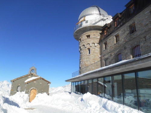 Au départ de Zermatt, une excursion inoubliable s'impose : le Gornergrat. The place to be all year round! Le train de la Gornergrat Bahn, premier train à crémaillère électrique de Suisse (1898), grimpe jusqu'à 3089m, à travers la forêt, en trente minutes. Au sommet, quelle vue splendide sur 28 autres montagnes de 4 000m parmi les 48 que compte la Suisse, ainsi que le circuit Loop 360° sur le Gornergrat avec plateforme panoramique. Le Kulmhotel Gornergrat possède la galerie marchande la plus haute d'Europe. L'hôtel et ses deux restaurants offrent la possibilité au voyageur de se restaurer et d'y passer une nuit inoubliable, avec la vue sur le deuxième glacier le plus grand des Alpes. Le rösti et la saucisse de veau sont à recommander (33€ avec une grande bière Cardinal). Le départ de Zermatt à 12h25 coûte 58€ aller-retour, au lieu de 70€.