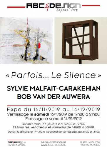 Sylvie Malafait-Carakehian (dessins-estampes) et Bob Van der Auwera (sculptures) constituent l'affiche de l'exposition "Parfois... Le silence". Exposition du 16 novembre au 14 décembre 2019