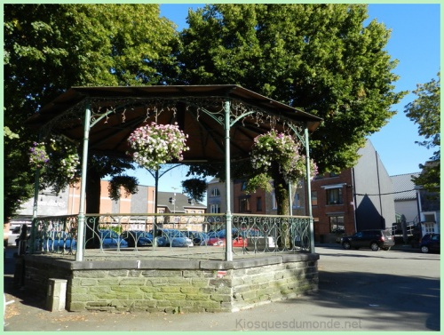 rappelle la courte guerre franco-allemande de 1870 à 1871. Pour commémorer la victoire des Prussiens, on érigea sur la place une statue en pierre à la gloire de l’empereur Guillaume de Prusse et à l’effigie du guerrier prussien. Après la Première Guerre mondiale, en 1918, Malmedy fut rattachée à la Belgique et la plupart des vestiges prussiens furent enlevés. C’est ainsi de la statue de l’empereur Guillaume fut remplacée en 1923 à l’initiative et aux frais des habitants du quartier par un kiosque à musique de plan octogonal. Ce dernier traduit le goût pour une architecture dite champêtre ou rustique qui allait inspirer la réalisation de nombreux kiosques. Dans le ciment moulé, on recréa une partie de la nature, imitant, dans ce cas-ci, le branchage naturel.