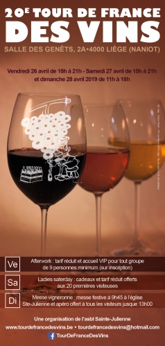 20e édition du Tour de France des Vins qui se déroulera à Liège du 26 au 28 avril prochains, un événement épicurien, convivial et caritatif.
