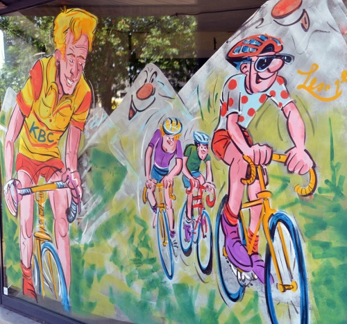 Le Tour De France en peinture sur vitrine