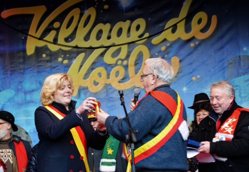 © photos signées Henri Chelieu de la cérémonie de remise des clés du Village de Noël… Comme de tradition, ce lundi 30 à 16h, le Mayeûr du Village de Noël Maurice Wilkin, entouré des membres du Conseil Villageois, a remis les clés du Village à Elisabeth Fraipont, Echevine de la Ville de Liège qui au nom de la Ville, les conservera jusqu’au 27 novembre prochain, date d’ouverture du 34ème Village de Noël !