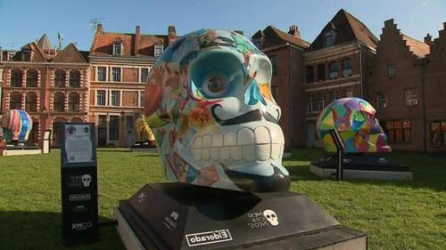 – « Mexicraneos, Calaveras », sur l’ « Ilot Comtesse », à proximité immédiate dudit Musée, jusqu’au vendredi 30 août, offrant à notre vue des crânes géants, customisés et colorés par différents artistes, créés pour le réputé « Dia de los Muertos » (« Jour des Morts »), une fête colorée, mélangeant les traditions aztèques et chrétiennes. A cette occasion, ils furent présentés au Mexique, le vendredi 02 novembre 2018, avant d’être exposés sur cet Ilot. D’autres crânes sont à découvrir à la station de métro et à la gare ferroviaire de Lille-Flandres, ainsi que dans divers Centres Commerciaux de la Métropole lilloise, nous rappelant que les « Fêtes indigènes dédiées aux Morts » figurent, depuis 2003, sur la liste du « Patrimoine culturel immatériel de