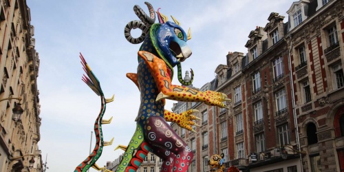 Au programme, l’évocation d’ « El dia de los Muertos », des artistes Frida Kahlo et Diego Rivera, avec la présence de « bandas » et autres « Mariachis », qui défileront, entre autres, bien sûr, entre l’Opéra et la gare ferroviaire de Lille-Flandres, cette Parade empruntant les 250 m de la rue Faidherbe, renommée « Rambla », d’ores et déjà, bordée, non plus d’élèphants, comme pour « Bombaysers de Lille », en 2006-2007, mais bien d’animaux imaginaires mexicains, qui, d’un « Coyotte » (Opéra) à un « Chien Ardilla » (Lille-Flandres) sont des Alebrijes, nés de l’esprit de Pedro Linares Lopez, en 1936, qui, habituellement réalisés en papier mâché, ont été, ici, créés, essentiellement, en fibre de verre, afin de pouvoir braver les éventuelles intempéries, jusqu’au 1er décembre.