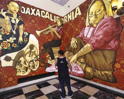 – « Tlacolulokos – Oaxacas à Los Angeles », jusqu’au vendredi 30 août, à l’entrée de ce même Musée, nous présentant d’immenses fresques de rues, réalisées, in situ, par Cosijosea Cernas et Dario Canul, descendants des indiens Zapothèques, fondateurs de« Tlacolulokos », un collectif de peintres soucieux detémoigner de l’important soulèvement populaire, qui survint en 2006, au sein de la cité-état d’Oaxaca, d’autres oeuvres murales de ces deuxartistes étant à découvrir à la « Maison Folie Moulins », ainsi que dans l’espace public lillois.