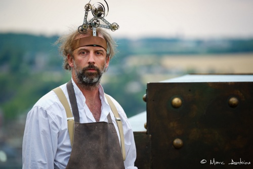 … Et si, l’an dernier, toutes les représentations des « Misérables », interprêtées par la compagnie « Act Hours », étant « sold out », ce spectacle, profitant du décor proposé par l’ancienne caserne hollandaise, se déroulait à l’arrière du bâtiment de « Terra Nova », cette année, nous resterons fidèles à Jules Verne, mais sur la grande prairie, sise, plus haut, entre « Terra Nova » et l’Esplanade de la Citadelle, nous permettant de bénéficier, en arrière plan, d’une superbe vue panoramique sur la Ville de Namur, à la nuit tombante…