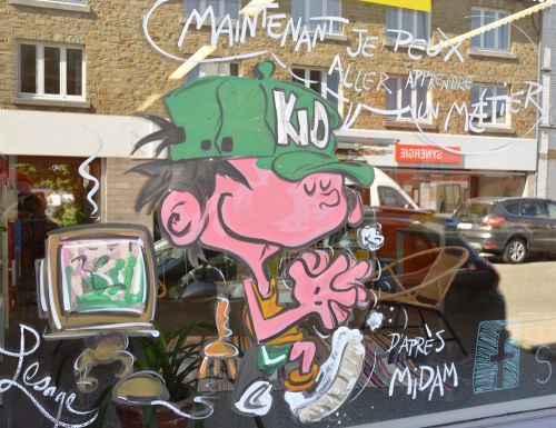 Jonathan Martin et la commune de Libramont ont demandé à quelques artistes peintre de venir décorer quelques vitrines dont Jean-Marie Lesage qui a décoré 10 cellules commerciales dans le cadre de la la quinzaine de la BD.