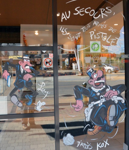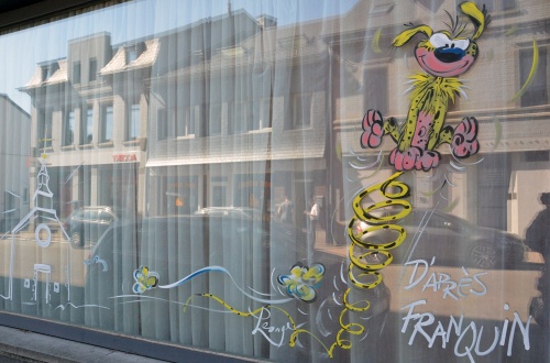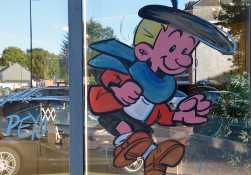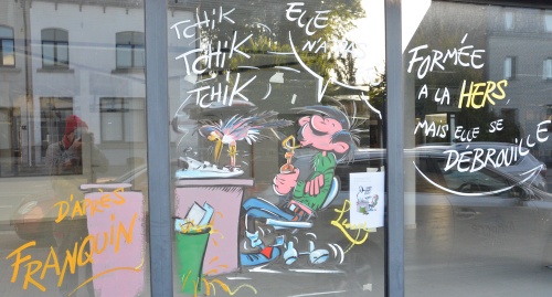 Peinture sur vitrines à Libramont pour la quinzaine de la BD
