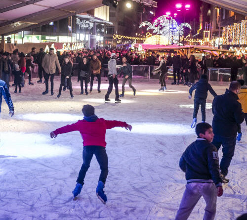 ** Patinoire : Ouverture : jusqu’au dimanche 08 janvier 2023, dernières entrées une heure avant la fermeture, tous les jours de 12 à 22h, les samedis 25 et 31 décembre, de 12h à 18h. Tarifs (location des patins incluse/patinage déconseillé aux moins de 6 ans) : 10€ (5€, pour les moins de 16 ans / 3€, par élève, avec sa classe / 25€, pour 2 adultes & 2 enfants / 0€, pour les accompagnants de personnes porteuses d’un handicap).