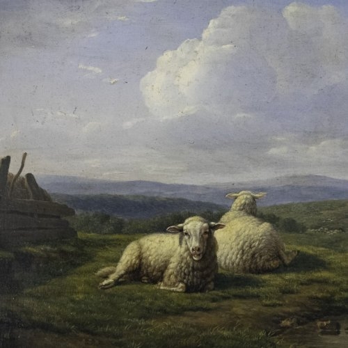 Côté peintures, nous trouvons, notamment : « En Juin » (1894), d’Anna Boch (1848-1936) ; « La bonne Lecture », d’Alfred Stevens ; et « Calme plat, Effet de Matin. Hollande » (1876), de Paul-Jean Clays (1819-1900), cette oeuvre ayant pour voisine une petite création de Félicien Rops, porteur du texte : « Rarement Clays varie » (1857/réalisée pour« Uylenspigel au Salon de Bruxelles » (© Province de Namur/« Musée Félicien Rops » ; les deux derniers tableaux exposés, « Moutons » (s.d.) et « En Eosse » (1867), étant dûs à Eugène Verboeckhoven (1798-1881)…