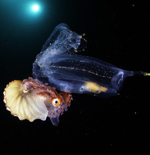 Synopsis : « Au-delà de la barrière de corail, la haute mer est un biotope rempli de créatures étranges, d’associations inhabituelles que l’on peut observer à la dérive lorsqu’on s’aventure dans les profondeurs la nuit … »