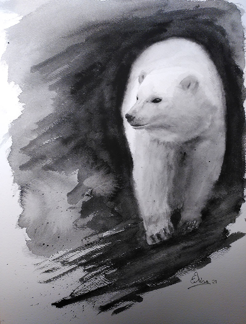 *** « Envolée » (Belgique/Elise Pire, pour qui « jouer avec l’eau et les couleurs sur le papier, c’est retourner en enfance, c’est méditatif).
