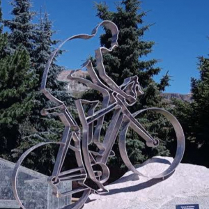 L’œuvre a été mise en place sur la Colle, à côté de la fontaine de l’obélisque napoléonien, ravitaillement pour les cyclistes gravissant Sestrières. Il a été créé par l’artiste international Maurizio Perron. « Une œuvre – explique Perron – qui regarde vers le passé, mais aussi vers l’avenir. Fausto Coppi, en plus d’être le champion dont toute l’Italie se souvient, était aussi un grand exemple de loyauté et d’équité humaine et sportive. C’est la leçon que tous les jeunes devraient retenir : pratiquer un sport difficile comme le cyclisme est une école de la vie. Et il doit être abordé de la manière la plus correcte possible. L’œuvre représente Coppi dans l’acte d’effort lors d’une ascension en montagne. La sculpture symbolise la silhouette du cycliste, mais elle est vide à l’intérieur, afin de pouvoir admirer le paysage montagneux de Sestrières. Cette transparence représente aussi le sérieux et la moralité de ce grand champion décédé prématurément ».