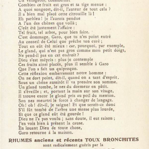 Ne voilà-t-il pas qu’un gland lui tombe sur le nez (la narine)