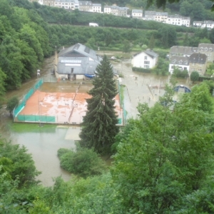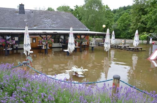 Les courts de tennis sont partiellement sous eau, de même que le terrain de mini-foot. L'aire de pétanque, n'en parlons pas. Idem pour la plaine de jeux d'Houtopia.