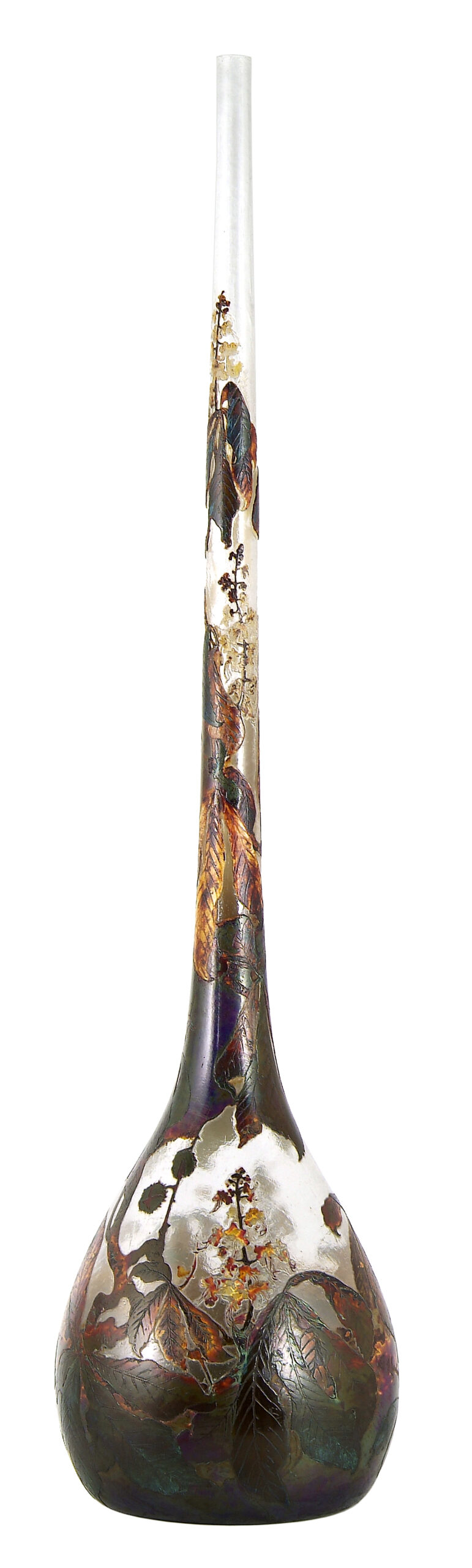 Parmi les pièces particulièrement représentatives des productions de la cristallerie du « Val Saint-Lambert », notons le « Vase aux Branches de Marronniers » (1m 61 de hauteur/8,8 kg/panse de 38 cm de diamètre), créé, en 1906-1907, par les frères Muller, Jean-Désiré (1877-1952) & Eugène (1883-1914), passés maîtres dans la technique de la fluogravure, association de la peinture émaillée et de la gravure à l’acide, qui avaient été engagés par Georges Deprez, directeur de la cristallerie, sur les conseils de Léon Ledru.