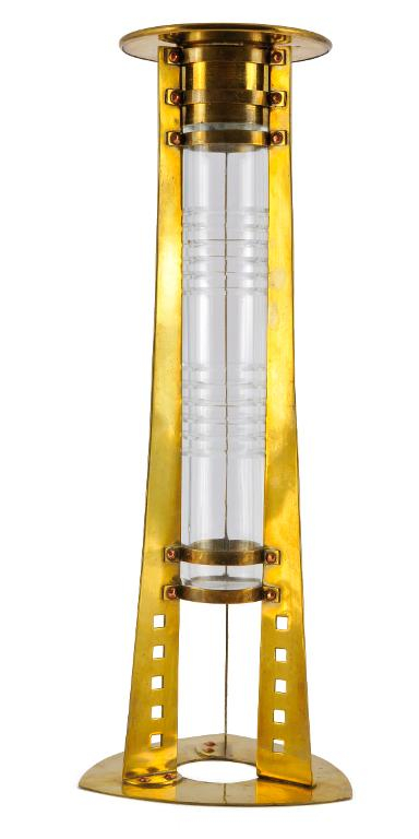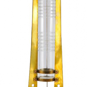 Pour revenir à l’architecte et décorateur liégeois Gustave Serrurier-Bovy – outre la présentation, dans l’un des meubles vitrines, d’une création sans titre, un soliflore, produit, vers 1902, par le « Val Saint-Lambert », réalisé en cristal incolore soufflé et taillé, placé dans une monture en laiton, présentant une ligne et un motif géométrisant résolument novateurs – soulignons la présence, dans la dernière salle annexe, de deux de ses meubles.