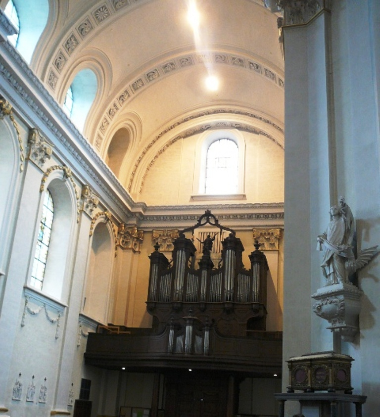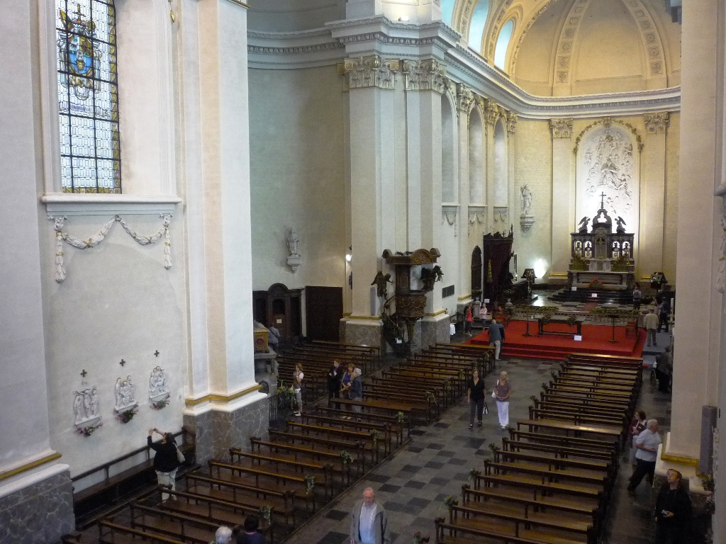 D’emblée, la majesté de ce lieu aux lignes pures et dépouillées vous en impose. Deux hautes tours carrées vous accueillent et vous invitent dans l’intérieur aux vastes volumes baignés de lumière. À l'intérieur, votre regard sera attiré par l’autel de la Sainte Vierge, en marbre, toujours d’origine, ainsi que ses quatre confessionnaux de bois sculptés et sa chaire de vérité. Si les vitraux ne sont pas d’origine (ils ont été détruits pendant les bombardements de décembre 1944), le carillon, lui, l’est bel et bien : construit en 1786, il est composé de 35 cloches authentiques, qui sont l’œuvre de Martin Legros, un habitant de Malmedy.
