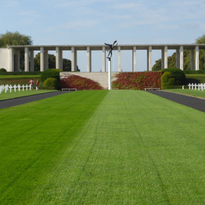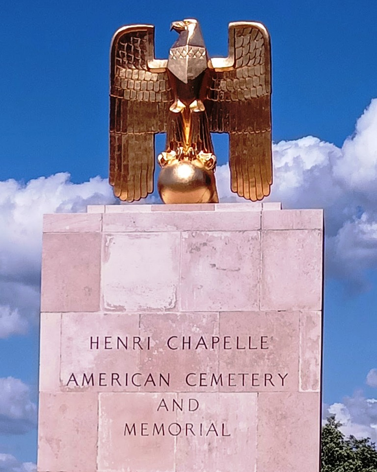 D'une superficie de 23 hectares, le cimetière américain d'Henri-Chapelle, en Belgique, abrite les restes de 7 992 soldats américains, dont la plupart ont perdu la vie pendant l'avancée des forces américaines en Allemagne. Leurs pierres tombales sont réparties selon de longues courbes sur une vaste pelouse légèrement en pente. Une large allée traverse le cimetière. À l'ouest, le site offre un excellent point de vue sur la campagne belge environnante, qui fut autrefois un champ de bataille.