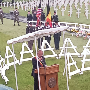 D’un point de vue purement visuel, la cérémonie du Memorial Day au Cimetière Américain Henri-Chapelle est de loin la plus impressionnante. Lorsque l’on se place sur l’esplanade surplombant le cimetière, on ne peut qu’être touché par la masse des vies perdues. C’est le plus grand cimetière américain de Belgique, 7.987 militaires sont enterrés ici.