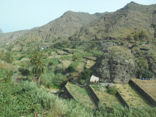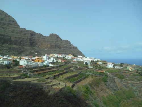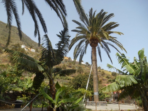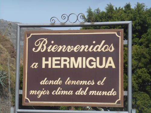 En 1970 les hippies quittent Ibiza pour venir à la Gomera. Et comme disait le guide : «Respirez la Gomera, écoutez-la, sentez-la, goûtez-la et touchez-la». Hermigua offre un paysage très vert, des bananeraies, des cultures en terrasse ; pas de discos, pas de cinémas, pas de karaoke mais une nature exceptionnelle. Nous vivons une ambiance canarienne authentique. Visitons le parc ethnographique de la Gomera et découvrons l'artisanat et les produits de l'île à la boutique, comme le almogrote (fromage de chèvre), la liqueur de banane, la crème de aloe vera, le délicieux sirope de palma (sirop de palmier) qui peut accompagner les fromages ou les glaces.