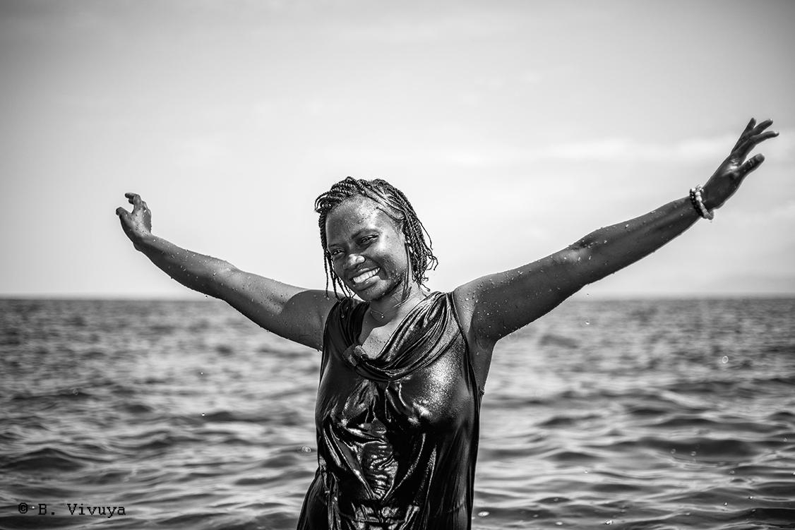 - N'simire Zagabe Sylvie, 28 ans, coiffeuse et esthéticienne, photographiée debout dans l'eau : "J'ai choisi de poser avec des habits qui collent sur mon corps, qui le laissent deviner, mais cachent ce que je souhaite cacher. Je veux mettre en avant les formes de mon corps, ... qui m'appartient et que j'ai choisi de vous montrer ... L'interaction avec la photographe m'a mise en confiance. Je ne m'inquiétais pas du résultat."