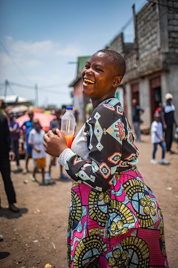 - Keren Rusenya, 16 ans, dans une rue, en robe multicolore : "Je voulais que vous me preniez en photo, ca je suis intéressée et curieuse de votre façon de travailler ... Votre attitude et l'interaction que vous avez avec la communauté qui est curieuse, ne peut qu'inspirer confiance."