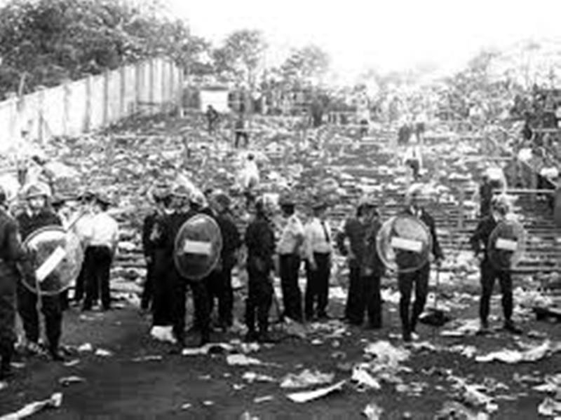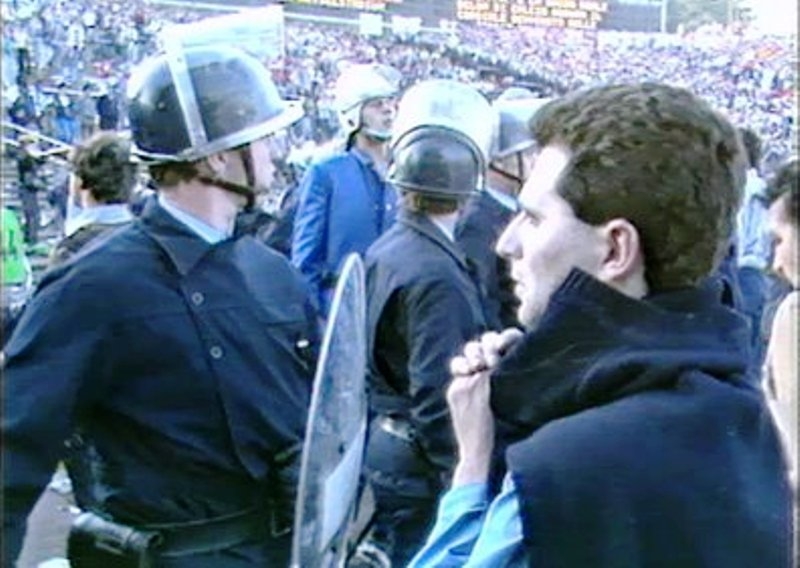 Personnellement, j'ai gardé des images très précises de ces événements mais elles ne sont pas aussi terribles que celles vues en direct par les téléspectateurs (attention donc au reportage ci-dessous). En réalité, je n'ai pas eu conscience sur le moment de ce qui se "jouait" en contrebas de la tribune. Grâce au sang froid de mon entraîneur ( M. Harold Krings ), je suis resté agrippé avec quelques autres à une rambarde, juste sous l'horloge du stade. Nous avons subi les vagues d'assaut ( dans les 2 sens ) et reçu pas mal de coups ou de projectiles.
