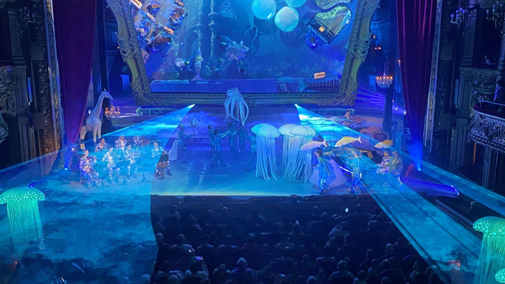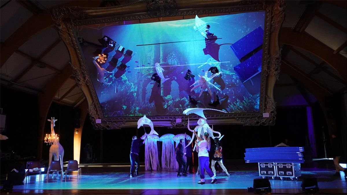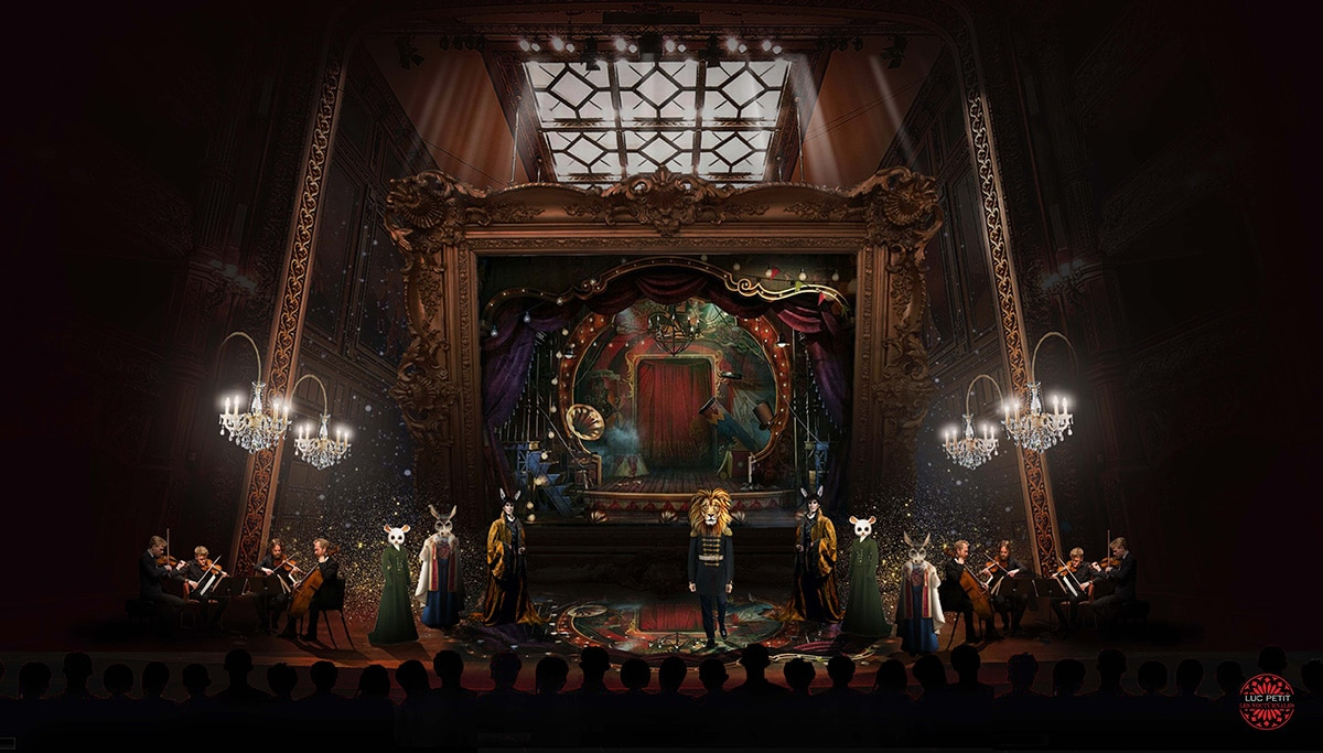 Véritable alchimiste des arts de la scène, alliant toutes les disciplines et les moyens techniques les plus innovants, afin de présenter des atmosphères surprenantes, toujours au service de sa démarche artistique et humaine, Luc Petit, grâce, au centre de cette mise en scène, à un miroir géant, qui – tout en réfléchissant les 16 tableaux de ce spectacle haut en couleurs – nous permet de voir et d’entendre le créateur original, en 1886, de ce formidable bestiaire, le compositeur français Camille Saint-Saëns (1835-1921), auteur de douze opéras. Ainsi, ce dernier pu agrémenter le « Mardi Gras » d’un ami violoncelliste, ce qui est bien de saison en ce congé scolaire autrefois nommé « Congé du Mardi-Gras ».