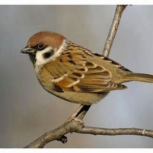 Friquet ou domestique? Les moineaux friquet ( Passer montanus ) et domestique ( Passer domesticus ) sont difficiles à distinguer, Le moineau friquet est un peu plus petit que le moineau domestique. Le friquet se caractérise par la tâche noire sur les joues blanches et par son collier blanc qui fait presque le tour du cou. La tête, la nuque et le croupion sont marron.
