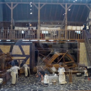 Si les différents supports d’écriture sont détaillés et l’histoire des techniques de fabrication expliquée, l’atelier du papier exhibe trois pièces maîtresses : une reproduction miniature d’un moulin à papier du XVIIIe siècle, la reproduction de la première machine en continu inventée par Nicolas Robert en 1799 et le joyau de l’atelier : la reproduction miniature de la machine en continu Thiry datant du premier quart du XIXe siècle.