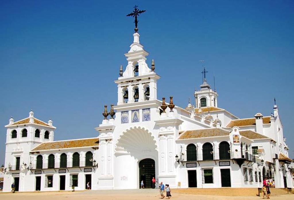 Santuario Nuestra Señora del Rocío. Le premier ermitage fut construit sur ordre du roi Alphonse X "le Sage" entre 1270 et 1300, après la conquête des terres arabes, et cité dans le traité de vénerie "Libro de la Montería" de Alfonso XI. L'édifice, "de dix aunes de long, orienté au sud, avec son toit de poutres en bâtière et son parvis" était vraisemblablement de style mudéjar.