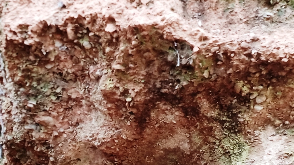 C’est une roche qui est sédimentaire car elle s’est formée au départ de galets et de sédiments, apportés par une rivière qui coulait là il y a très longtemps dans la région de Prüm en Allemagne, et qui se sont déposés en couches successives. C’est aussi le seul poudingue de Belgique de type continental ( les autres poudingues visibles en Belgique sont d’origine marine avec des galets plus arrondis ).