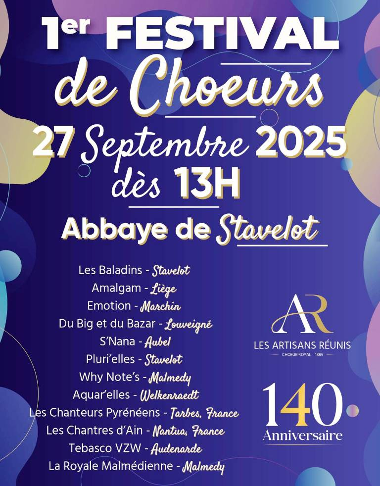 Fondé en 1885 à Stavelot, le Chœur Royal Les Artisans Réunis célèbre en 2025 ses 140 ans d’existence. Cet ensemble vocal, profondément enraciné dans la tradition musicale locale, a su, au fil des décennies, diversifier son répertoire tout en maintenant une ferveur et un enthousiasme constant. De la musique religieuse aux chants wallons, en passant par des interprétations carnavalesques, rock et bien d’autres styles, le chœur ne cesse de surprendre et d’émouvoir son public.