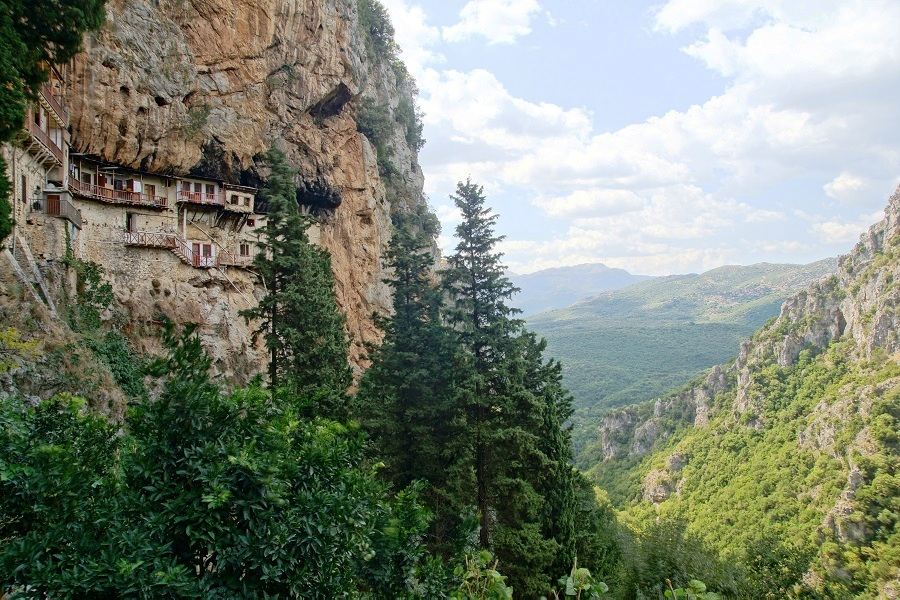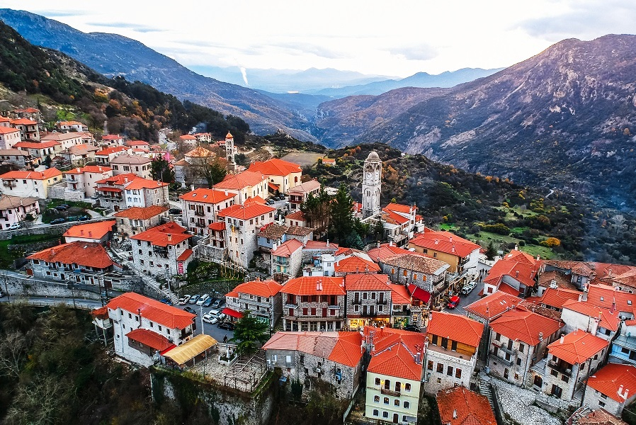 Andritsena, Karitena, Stemnitsa, Dimitsana, autant de hameaux perchés qui déroulent leurs ruelles étroites et pavées entre des maisons patriciennes ornées de balcons en bois et coiffées de toits de tuiles. Quelques boutiques d’un autre âge font encore la part belle à l’artisanat local : du miel parfumé, des tapis de laine, des nappes brodées, des cannes de berger, des confitures de fruits sauvages,… D’un bourg à l’autre, la route tortueuse serpente le long des gorges, ouvrant de superbes panoramas sur les montagnes tapissées de forêts de sapins. Chaque village propose des sentiers balisés qui mènent à d’innombrables trésors cachés : ruines antiques, fontaines scellées dans la pierre, chapelles byzantines, cascades bondissantes…