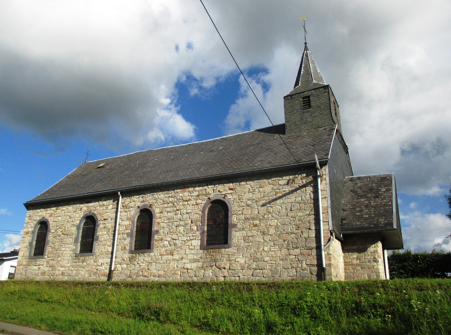 - la petite Chapelle St Quirin érigée entre 1812 et 1816 en moellons d’arkose. Une seule nef et deux fenêtres, l’une à l’avant et l’autre à l’arrière, encadrées de schiste ardoisier. Peinture de Ste Barbe du 18ème siècle.