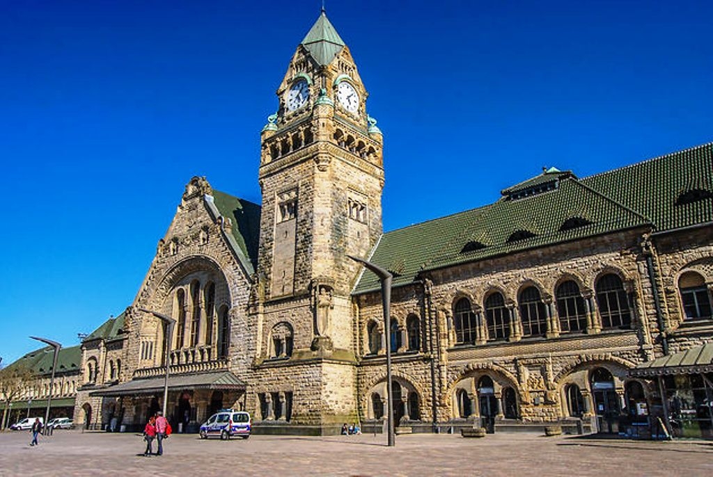 On ne peut qu’être subjugué face à cette grande gare de style néo-roman rhénan. Quelle prestance ! Inaugurée en 1908, elle a été commandée lors de la première annexion allemande par Guillaume II, pour le transport des marchandises et des personnes. Une raison stratégique, également : déplacer, en un minimum de temps, le plus de soldats possible. Imaginée par l’architecte allemand Jürgen Kröger, la gare de Metz s’étend sur 300 m, abritant bien des pièces : hall d’accueil, galeries, appartements impériaux… Les vitraux de la façade sont remarquables. Classée Monument historique en 1975, elle a été élue « plus belle gare de France » par trois fois au concours organisé par SNCF Gares et Connexions.